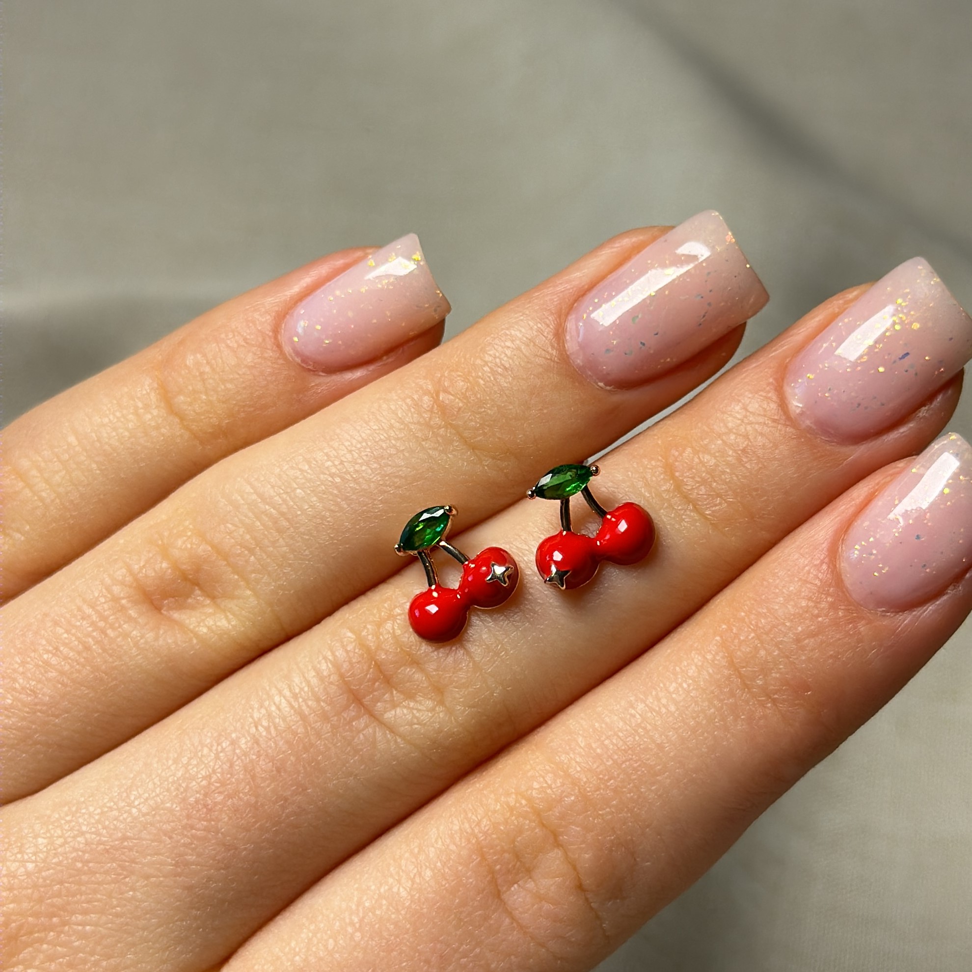 Дитячі сережки-пусети вишеньки медзолото