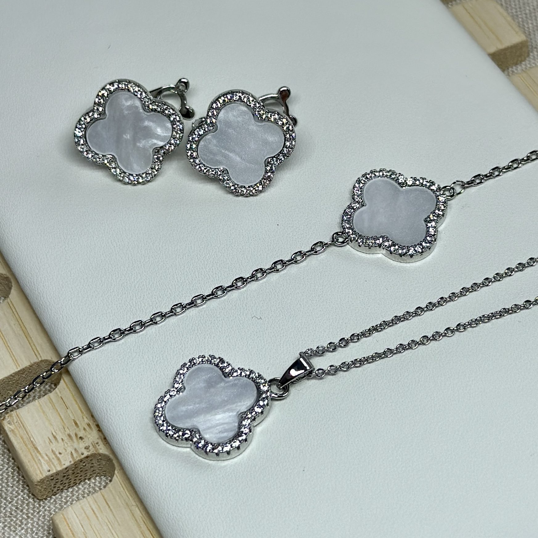 Набір 3 в 1 клевер з камінцями (сережки, підвіска, браслет)